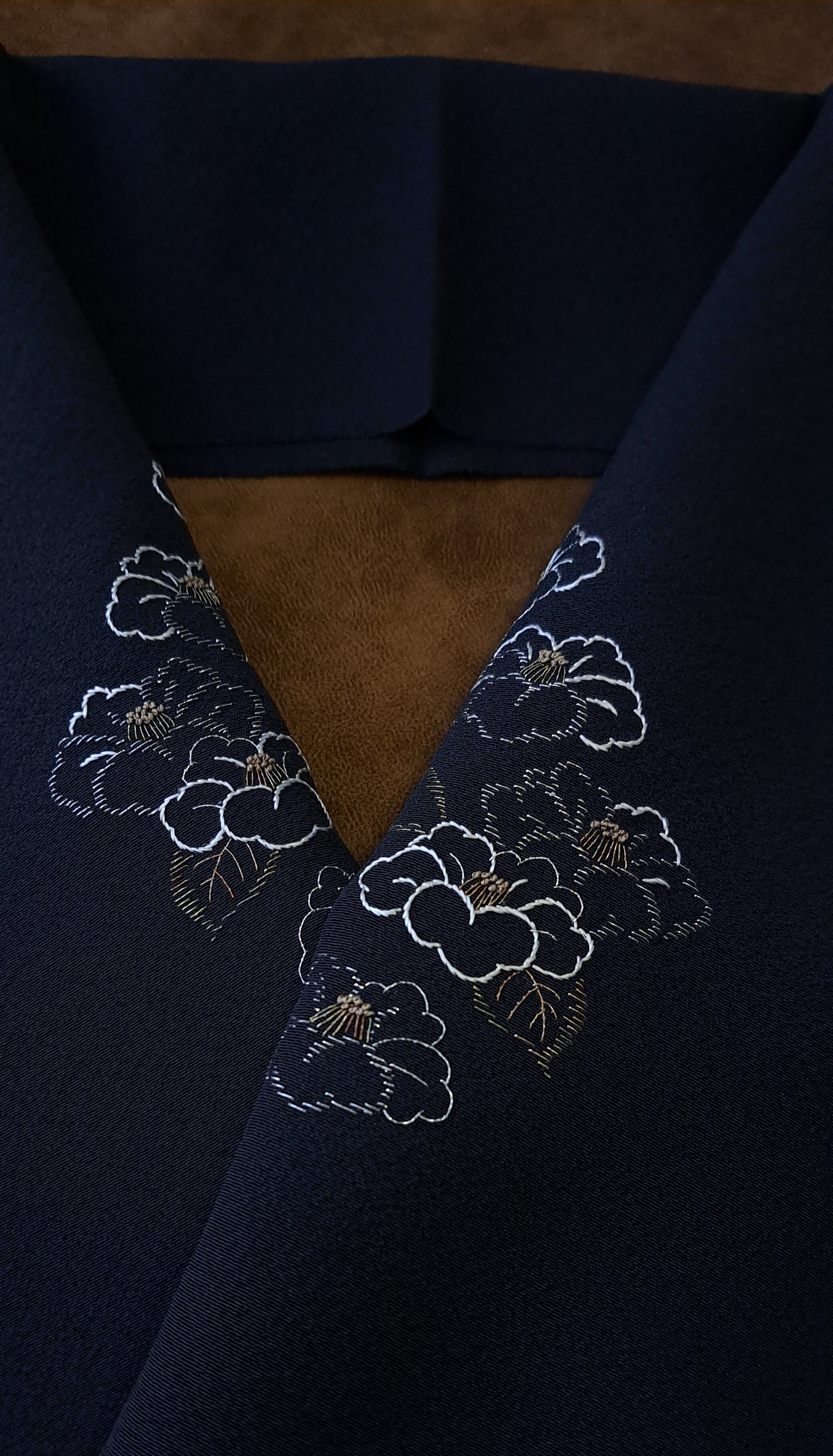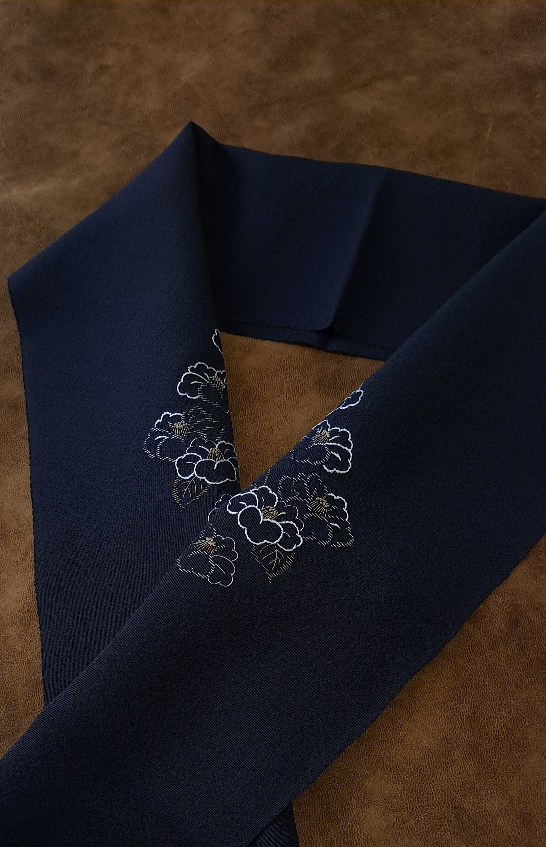 縮緬の黒地に椿の半襟です。